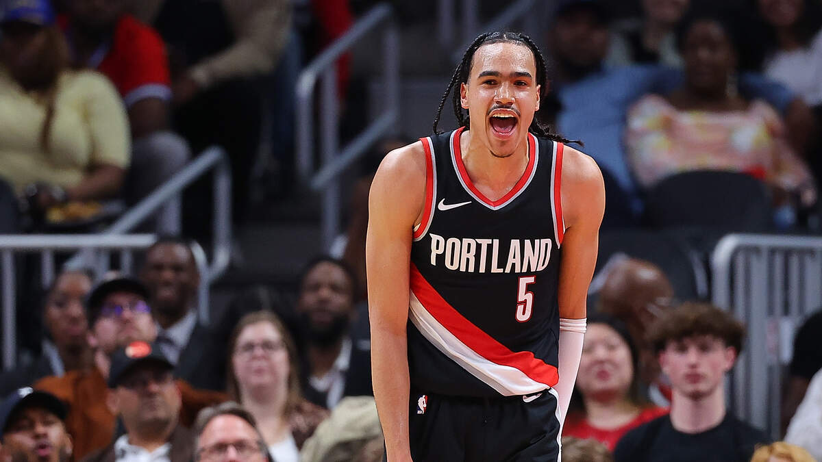 Shaedon Sharpe scored 32 points including the go-ahead three-pointer with 1:03 remaining as the Portland Trail Blazers defeated the Atlanta Hawks 114-110 Sunday evening at Moda Center in Portland.