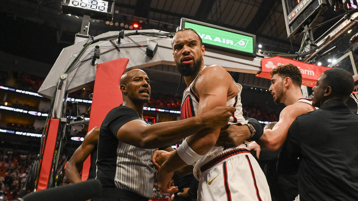 Sharpe was called for a loose ball foul on the play and Simons and Brooks both received technical fouls.
