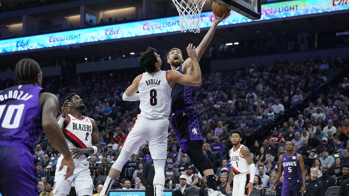 ----- Deni Advija finished with 20 points, nine rebounds, and five assists as the Portland Trail Blazers improved to 2-1 in Emirates NBA Cup play with a 115-106 victory over the Sacramento Kings Friday night at Moda Center in Portland, Oregon.
